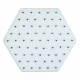 It has 61 pins spaced evenly over an 8-inch hexagon tile.