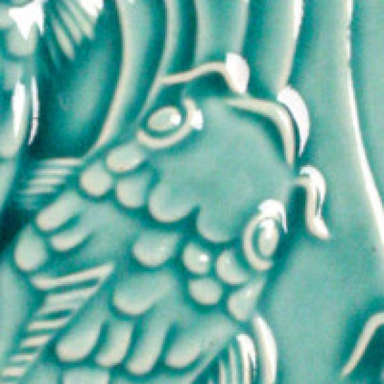 Turquoise is a brilliant, glossy, semi- transparent glaze that breaks clear over textured surfaces
