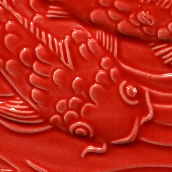 Brilliant Red is a lively, glossy, semi- transparent fire engine red glaze that breaks clear over textured surfaces.