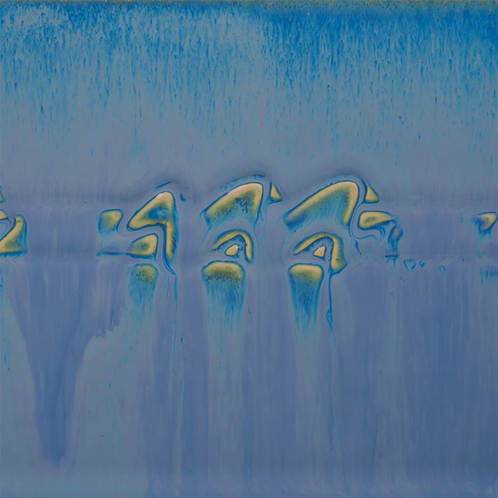 Lapis Flow is a flowy glaze, varying in color from soft blue to purple and breaking green over texture.