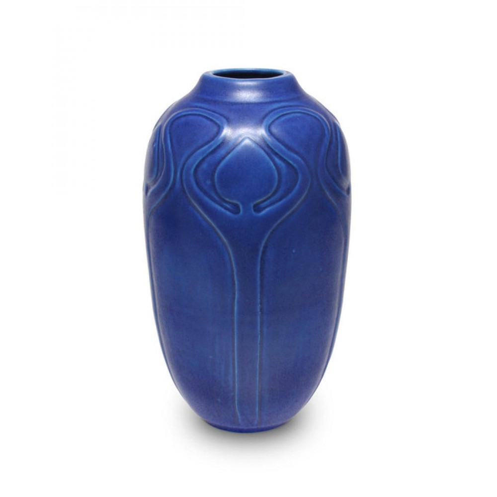 Satin Matte Dark Blue is an opaque, buttery cobalt glaze that accentuates textured ware and boasts a classic art deco appearance.