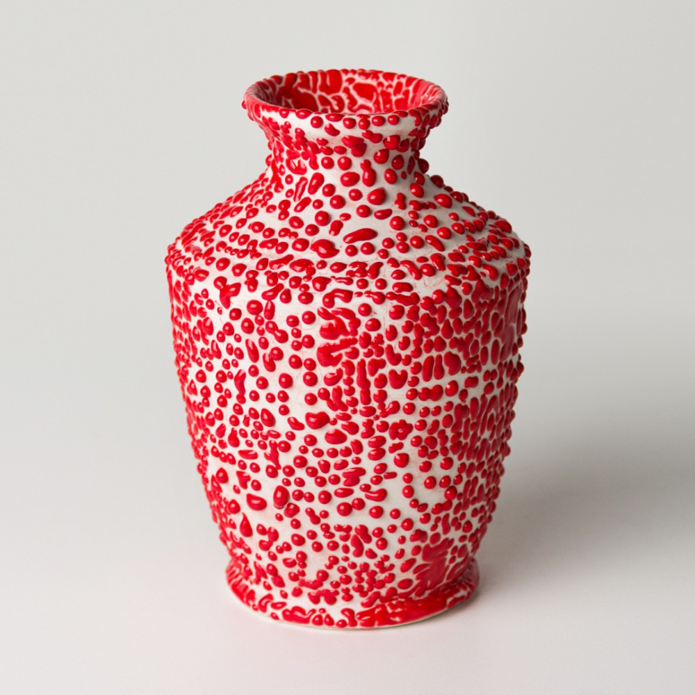 Use with Underglazes and Engobes: Beads remains dimensional when applied over Underglazes and Stoneware Engobes, preserving its raised texture. For best results, it is recommended to bisque fire the Underglaze or Engobe to cone 04 before applying the Beads, as this helps with adhesion and ensures the glaze performs effectively during the final firing.