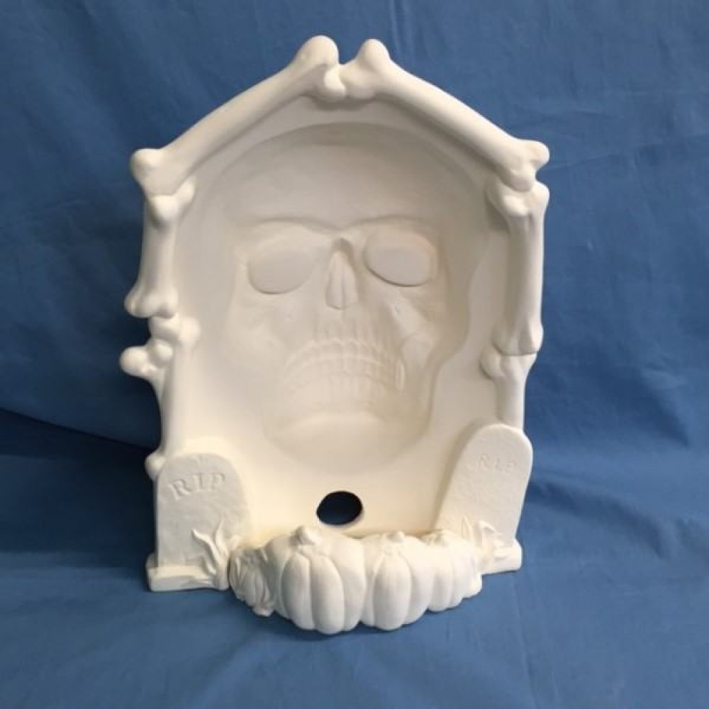 SK3088 Skull Watching in ready to paint, Cone 04, Ceramic Bisque that is hand made in the U.S.A