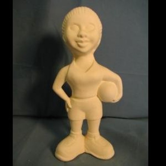 SCS0101A Diva Girl with Basketball in ready to paint, Cone 04, Ceramic Bisque that is hand made in the U.S.A