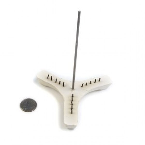Stilt 10 x 15 x 1 stilt measures 3.25" from the tip of one arm to the tip of the next. Each arm has 5 metal points, for a total of 15. The length of inner metal rod measures 5.75".