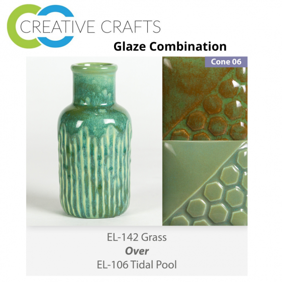 Glaze Combination - EL142 Grass over EL106 Tidal Pool Low Fire Combo in 4 ounce sized containers