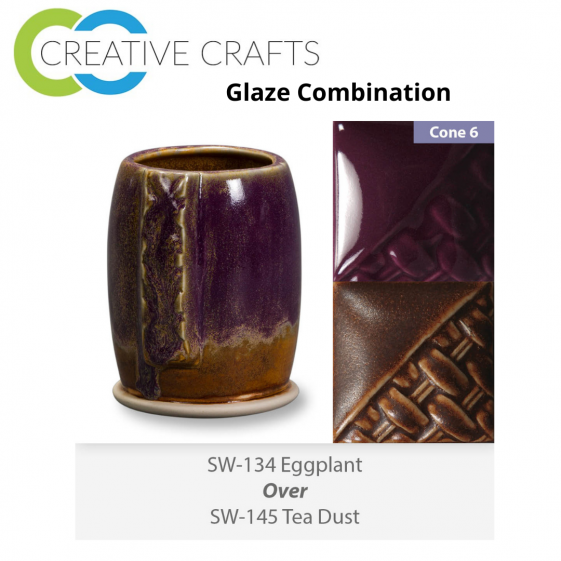 SW-134 - Eggplant over SW145 Tea Dust (brush on) Stoneware Glaze Combination