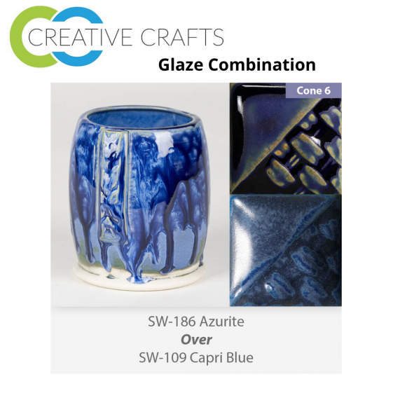 Azurite SW-186 over Capri Blue SW-109 Stoneware Combination