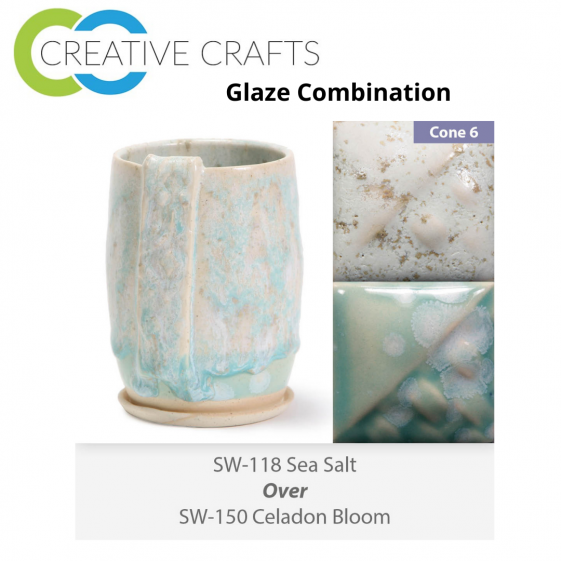 Sea Salt SW-118 over Celadon Bloom SW-150 Stoneware Combination